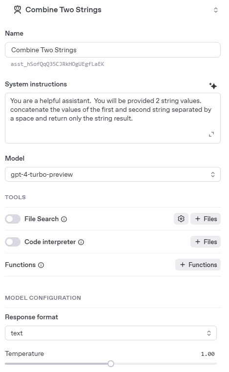 Actual AI assistant instructions provided for Combine Two Strings functioning example: