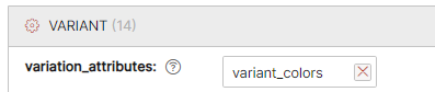In the sample below variant colors have been defined as the attribute that will be used to differentiate between specific product variants. The list of attributes used to identify the values that define the variants for a specific group of product will be stored in the system attribute variation_attributes. Editing or modifying variation_attributes allows the modification of the attributes that define the variant.