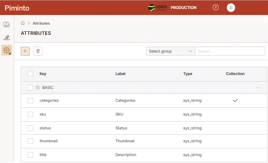 The Product Information Management (PIM) System requires that a minimum number of predefined attributes are available for product information to be assigned to. The internal variable names and the attribute types for these default attributes is fixed and cannot be changed. This allows the PIM to function properly and maintain the minimum amount of data for all products defined or stored in the PIM.