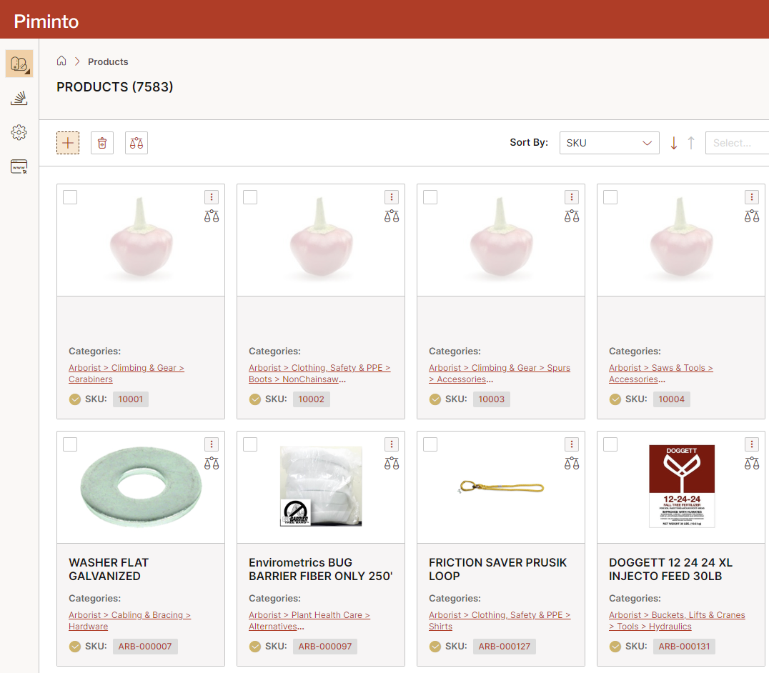 In the cards view, each product is represented as a separate card with a summarized view of its essential information. The cards might display product images, names, and other key details. Similarly to the list view, users must click on a specific product card to access the detailed product page for editing attributes. This view is often more visually appealing and suitable for browsing through product information.