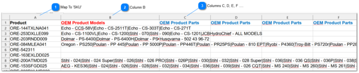 Each Column contains a single data records that needs to be added to the product attribute "oem_product_parts